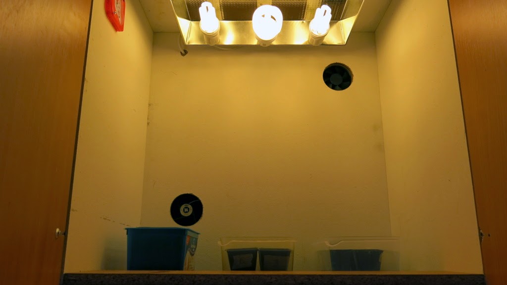 Przy pomocy dobrych ludzi, udało mi się w końcu zbudować growbox, czyli sztuczny świat dla moich przyszłych sadzonek. Światła mają tam pod dostatkiem, temperatura też przyjemna- nic tylko rosnąć i owocować. Pudło wyszło dość duże, a do tego ciężkie jak cholera. Wyposażone jest w trzy świetlówki energooszczędne, dwa wentylatory chodzące na bardzo wolnych obrotach (jeden zasysa świeże powietrze, drugi oddaje powietrze nagrzane), oraz w termometr i wilgotnościomierz. Więcej o szczegółach następnym razem, bo dziś już lecę na pysk. Pudło wygląda tak: