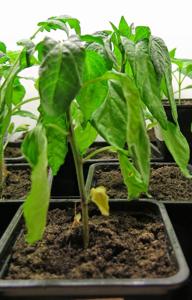 Z pomidorami zostały trzy opóźnione papryki, które z różnych powodów później wykiełkowały- póki będą się mieściły, będą mieszkały z pomidorami. A kiedy pomidory pójdą w górę, papryki wyfruną na balkon.