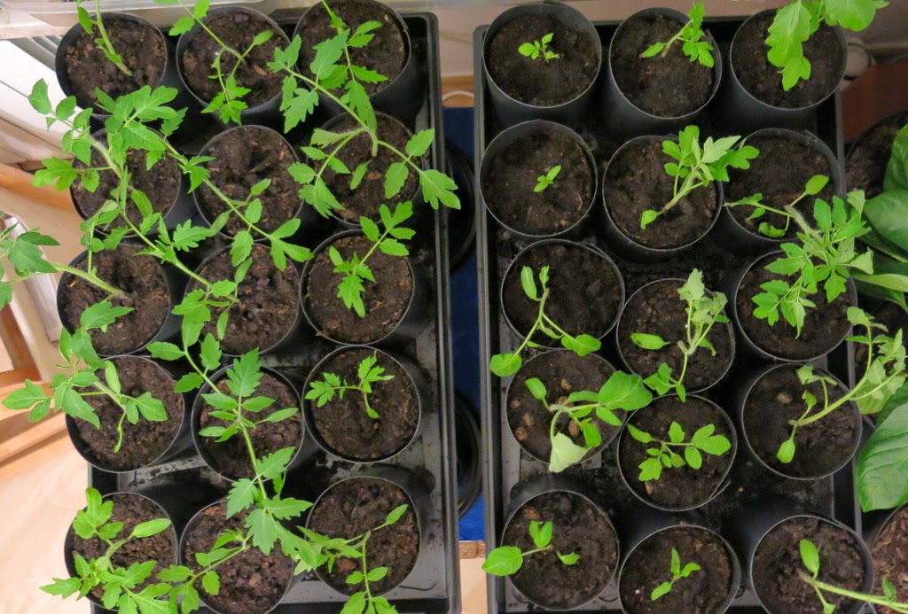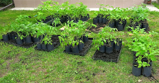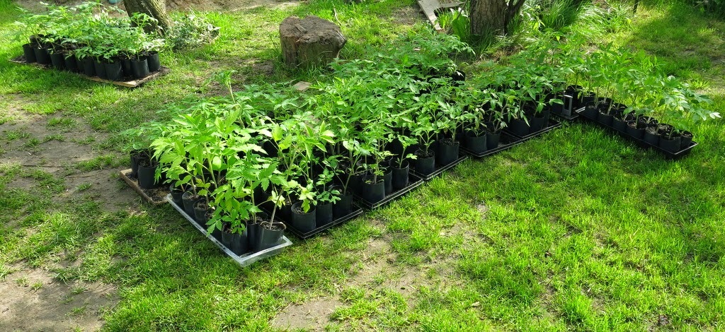 Po wyjęciu wszystkiego ze szklarni, podzieliłem rośliny wg. gatunków, żeby łatwiej było znaleźć delikwentów do posadzenia. Pomidory podzielone zostały tak, jak były moczone nasiona, czyli od lewego górnego rogu: 1, 2 itd. Początek drugiego rzędu to 7, 8, itd.